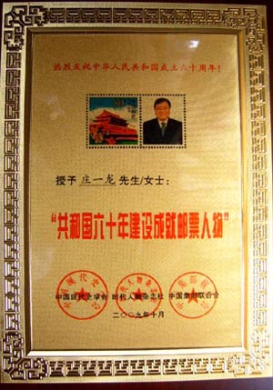 6.莊一龍被選為“共和國六十周年建設成就郵票人物”。