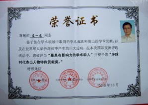 “輝煌60年有突出貢獻專家學者貢獻獎(終身成就貢獻獎)” 中國人生科學學會,中國老科協(xié)中國科學院分會,中外英才聯(lián)合會。