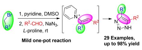 12. Guang-long Wu, Qin-pei Wu*, A Domino Reaction of Pyridinium Salts: Efficient Synthesis of 4,5-Disubstituted 1,2,3-(NH)-Triazoles, ChemistrySelect. 2018, 3:5212 –5215. https://doi.org/10.1002/slct.201800669.